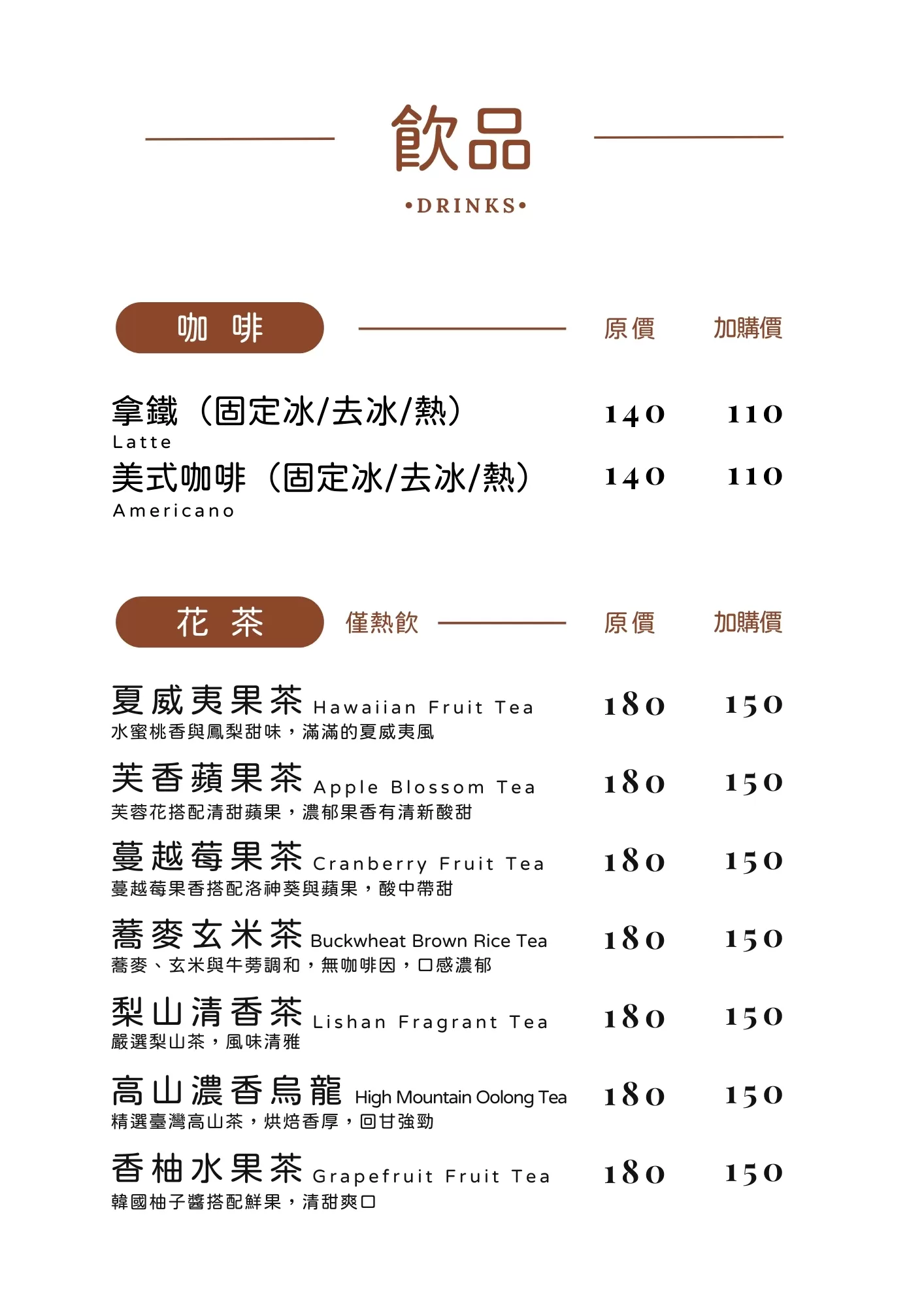 哈比雪兒 菜單 茶飲特調
